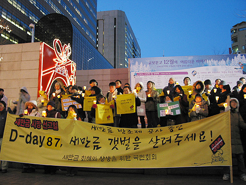 '»õ¸¸±Ý ÈÇØ¿Í »ó»ýÀ» À§ÇÑ ±¹¹ÎȸÀÇ'´Â 27ÀÏ ³²Àλ縶´ç°ú ±³º¸¹®°í ¾Õ¿¡¼ ÃкÒÇà»ç¸¦ ¿°í ¼¿ï°íµî¹ý¿øÀÇ ½Ã´ëÂø¿ÀÀû ÆÇ°áÀ» ºñÆÇÇÏ¸ç »õ¸¸±Ý °¹¹úÀ» »ì·Á´Þ¶ó°í È£¼ÒÇÏ¿´´Ù.