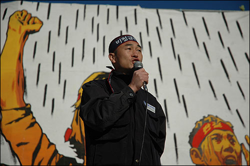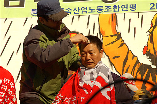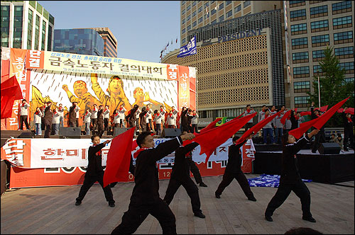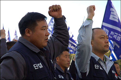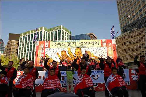 ¾ðÁ¦³ª ¹ÎÁÖ³ëÃÑÀÇ ¼±ºÀ´ë¸¦ ÀÚÀÓÇÏ´Â ±Ý¼Ó³ëµ¿ÀÚµéÀÌ »è¹ß·Î ÅõÀï °áÀǸ¦