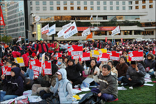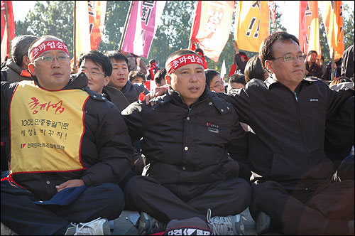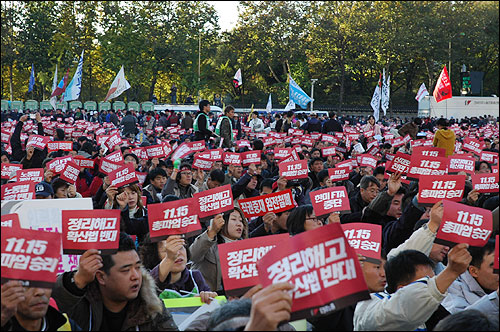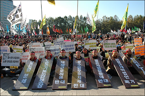 ³ëµ¿ÀÚµéÀº Á¤¸®Çذí È®»ê¹ý ¹Ý´ë, ÃÑÆÄ¾÷ ½Â¸®, ÇÑ¹Ì FTA Áß´Ü µîÀ»