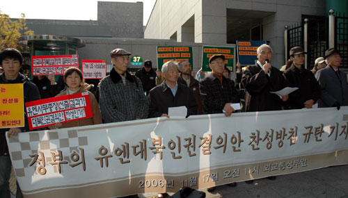 17ÀÏ ¿ÀÀü 11½Ã, ÅëÀÏ¿¬´ë µî 51°³ ½Ã¹Î»çȸ´Üü´Â ¿Ü±³Åë»óºÎ ¾Õ¿¡¼ ±âÀÚȸ°ßÀ» ¿°í Á¤ºÎÀÇ À¯¿£ ´ëºÏÀαǰáÀÇ¾È Âù¼º¹æÄ§À» ±ÔźÇϰí Áï°¢ öȸ¸¦ Ã˱¸Çß´Ù.
