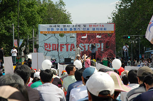 ¿¸° °áÀÇ´ëȸ¿¡´Â ¸ðµÎ 5000¿©¸íÀÌ Âü°¡ÇÏ¿´´Ù. FTA ¹ü±¹º»Àº ¸çÄ¥