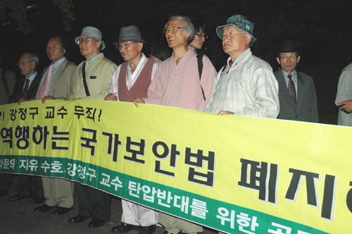 ¡â 2007³â 10¿ù 9ÀÏ Àú³á¿¡ ¼¿ïÁß¾ÓÁö¹ý¿¡¼, ÆòÈ½Ã´ë ¿ªÇàÇÏ´Â ±¹°¡º¸¾È¹ý ÆóÁö¸¦ ¿ä±¸ÇÏ´Â ±âÀÚȸ°ßÀÌ ±¹°¡º¸¾È¹ý ÆóÁö¿Í Çй®ÀÇ ÀÚÀ¯¼öÈ£, °Á¤±¸ ±³¼ö ź¾Ð¹Ý´ë¸¦ À§ÇÑ °øµ¿´ëÃ¥À§¿øÈ¸ ÁÖÃÖ·Î ¿·È½À´Ï´Ù.