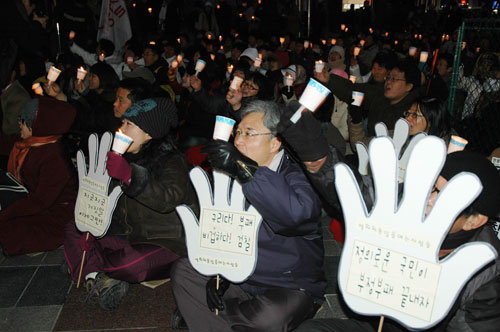 15ÀÏ ¿ÀÈÄ 5½Ã ±¤È¹® µ¿È¸é¼¼Á¡ ¾Õ¿¡¼, ºÎÆÐÁ¤Ä¡ û»ê Á¤Ä¡°ËÂû ±Ôź