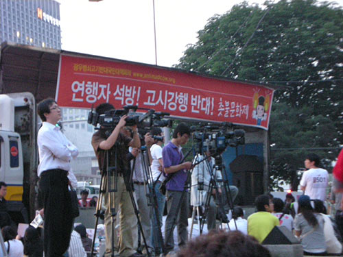 ÇÑÆí µ¿¾Æ¸é¼¼Á¡ °Ç¹° ¾Õ¿¡¼´Â ¾à 500¸íÀÌ ¿îÁýÇÏ¿© ÃкÒÇà»ç¸¦ Çß½À´Ï´Ù. Àú³á 10½Ã °æ Áýȸ°¡ ³¡³ µÚ Çлý°ú ½Ã¹Îµé 3õ¿© ¸íÀÌ °Å¸®ÇàÁøÀ» ½ÃÀÛÇß½À´Ï´Ù. ÀϺΠ¾ð·Ðº¸µµÃ³·³ Æø·ÂÀûÀÎ °Å¸®Çà»ç´Â ÀüÇô ¾ø¾ú½À´Ï´Ù. ¾ÆÀ̸¦ ¾ÈÀº ÀþÀº ºÎºÎºÎÅÍ ¿Ü±¹ÀαîÁö Âü¿©ÇÑ ÇàÁøÀÌ ÀÚÀ¯·Ó°í ÀÚ¹ßÀûÀ̰í, ÆòÈ·Ó°Ô ½ÃÀ۵Ǿú½À´Ï´Ù. ½Ã¹Î°ú ÇлýµéÀº »õº®±îÁö µµ½É µµ·Î¸¦ ÇàÁøÇϸç '¹Ì±¹»ê ¼è°í±â ¼öÀÔ ¹Ý´ë'¸¦ ¿ÜÃÆ½À´Ï´Ù. °æÂûÀº Áö³ ÁÖ¸»ÀÇ Áø¾Ð¿¡ ´ëÇÑ ±¹¹Î ¹Ý¹ßÀ» ÀǽÄÇØ¼ÀÎÁö óÀ½¿¡´Â ¼Ò±ØÀûÀ¸·Î ´ëÀÀÇÏ´Ù°¡ »õº® 2½Ã°¡ ³Ñ¾î°ÅÀÚ Åä³¢¸ôÀÌ½Ä Áø¾ÐÀ» °ÇàÇÏ¿© ¶Ç 29¸íÀÇ ¿¬ÇàÀÚ°¡ ¹ß»ýÇß°í ºÎ»óÀÚµµ ¹ß»ýÇß½À´Ï. À̸í¹Ú Á¤ºÎ´Â ÀÚ±âÀÇ º°¸íÀÎ 2MB ¼öÁØ¿¡ ¸Â°Ô ±¹¹ÎÀÇ ¿ä±¸°¡ ¹«¾ùÀÎÁö ÀüÇô ÀÌÇØ¸¦ ¸øÇϰí ÀÖ´Â °Í °°½À´Ï´Ù. Áþ¹âÀ¸¸é Áþ¹âÀ»¼ö·Ï ¹Îµé·¹Ã³·³ ÀϾ´Â °Ô ¹Ù·Î ¹ÎÁßÀÇ ¼Ó¼º ¾Æ´Ï´ø°¡¿ä!