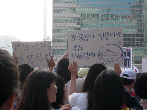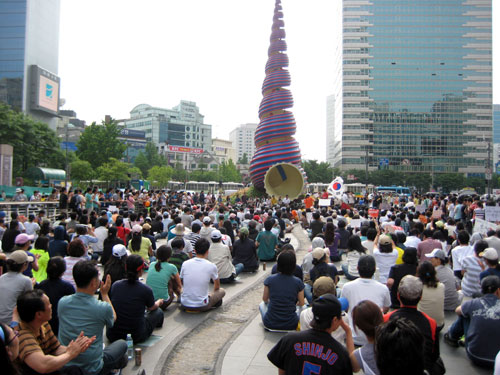 9½Ã 30ºÐ°æ û°è±¤Àå¿¡¼ ÁøÇàµÈ ÃкÒÁýȸ´Â ¸¶¹«¸® µÇ¾ú½À´Ï´Ù. ÃкÒÁýȸ´Â ³¡³µÁö¸¸ Âü¿©ÇÑ ½Ã¹ÎµéÀº ÀÚ¸®¸¦ ¶ßÁö ¸øÇϰí, ½Ãû±¤Àå¿¡ ¸ð¿© ÀÖ´Â ½Ã¹Îµé°ú ÇÕ·ùÇÏ¿© °¡µÎÇàÁøÀ» ÁøÇàÇÏ¿´½À´Ï´Ù. ¼¿ï½Ãû¿¡¼ °æÂû¿¡ ¸·Èù ´ë¿À´Â ³²´ë¹®À» Áö³ª ¼¿ï¿ªÀ¸·Î À̵¿Çϰí ÀÖ½À´Ï´Ù. ½Ã¹ÎµéÀº '°í½Ã öȸ! ¿¬ÇàÀÚ ¼®¹æ! µ¶Àç Ÿµµ!'¸¦ ¿ÜÄ¡°í ÀÖ½À´Ï´Ù. ½Ã°£ÀÌ Áö³¯¼ö·Ï Âü¿©ÇÏ´Â ½Ã¹ÎµéÀÌ ´Ã¾î³ª°í ÀÖ½À´Ï´Ù.