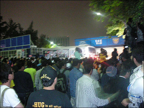 ±¤È¹® µÞ°ñ¸ñÀ¸·Î ÇâÇÏ´Â ±æ¸ñµµ ¸ðµÎ Àü°æÂ÷·®ÀÌ ¸·°í ÀÖ¾ú´Âµ¥, ±× °¡¿îµ¥ ¿¾ ±Ý°Á¦È °ñ¸ñ¿¡ ¼ÀÖ´Â Àü°æ¹ö½º¸¦ ½ÃÀ§´ë°¡ ¹åÁÙ·Î ²ø¾î³»°í ÀÖ¾ú½À´Ï´Ù. ÀÌ¹Ì ÇÑ ´ë´Â ²ø¾î³½ »óÅ¿´¾ú°í, ´Ù¸¥ ÇÑ ´ë¸¦ ²ø¾î³»´Â ÁßÀÔ´Ï´Ù. µÑ·¹¿¡ ¼ ÀÖ´ø ¸¹Àº »ç¶÷µéÀº À¸»þÀ¸»þ¸¦ ¿¬È£ÇÕ´Ï´Ù.