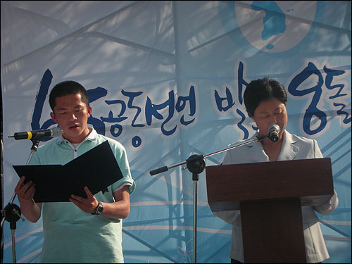 ¡â À±±Ý¼ø 6.15¿©¼ºº»ºÎ °øµ¿´ëÇ¥, ±èÇö¿õ 6.15ûÇк»ºÎ °øµ¿´ëÇ¥°¡ °áÀǹ®À» Àоú½À´Ï´Ù. °áÀǹ®¿¡´Â 6¡¤15 °øµ¿¼±¾ð°ú 10¡¤4 ¼±¾ðÀ» ÁöÁöÇÏ¸ç ±× ÀÌÇàÀ» À§ÇØ ³² ºÏ ÇØ¿Ü°¡ ³ë·ÂÇÒ °ÍÀ» °áÀÇÇÏ´Â ³»¿ëÀÌ ´ã°Ü ÀÖ¾ú½À´Ï´Ù.