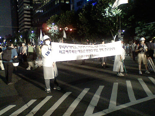 7¿ù 19ÀÏ Åä¿äÀÏ ¿ÀÈÄ 9½Ã. ½Ã¹ÎµéÀº Á¾·Î 3°¡¿¡, µ¿´ë¹® ¹æÇâÀ» ¹Ù¶óº¸°í ¿¬Á ÁßÀÔ´Ï´Ù. ¼¿ï ÆòÅë»ç ȲÀ±¹Ì »ç¹«±¹Àå°ú ½ÅÀçÈÆ ȸ¿øÀÌ ´ë¿ Áß°£¿¡¼ ¾ÕÂÊÀ¸·Î °¡¿îµ¥Âë ¾É¾ÆÀÖ½À´Ï´Ù. ¿À´ÃÀº Ä«Æä ȸ¿ø µî ÀÏ¹Ý ½Ã¹ÎµéÀÌ ÀÚ¹ßÀûÀ¸·Î ÃкÒÇà»ç¸¦ ÁøÇàÇÏ´Â ³¯ÀÔ´Ï´Ù. Âü°¡´ë¿À´Â Á¾·Î3°¡ ·ÎŸ¸®¿¡¼ Á¾·Î2°¡ ·ÎÅ͸®±îÁö ²Ë ¸Þ¿î ä ¿¬ÁÂÇϰí ÀÖ½À´Ï´Ù. 3-4õ ¸íÂë µÇ¾î º¸ÀÔ´Ï´Ù. ¿À´Ã ÃкÒÇà»ç´Â ¿ÀÈÄ 7½Ã, û°è±¤Àå¿¡¼ ½ÃÀÛµÇ¾î ³× »ç¶÷ÀÇ ÀÚÀ¯¹ß¾ð°ú ³ë·¡°ø¿¬À» ¸¶Ä¡°í ÀÏÂġ ÇàÁø¿¡ µé¾î°¬½À´Ï´Ù. ½Ã¹ÎµéÀº û°èõÀ» µû¶ó ÇàÁøÇÏ´Ù°¡ Á¾·Î ¹æÇâÀ¸·Î ÁÂȸÀüÇÏ¿© À̰÷¿¡ À̸£·¶½À´Ï´Ù. ¾î¸° ÇлýµéÀÌ ¿À´ÃÀº Àü°æµéÀÌ ¿ÜÄ¡´Â ±âÇÕ¼Ò¸®¸¦ ÆÐ·¯µðÇÏ¿© ¿ÜĨ´Ï´Ù.