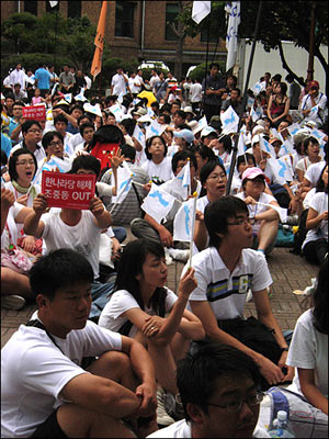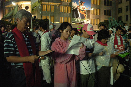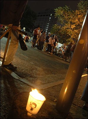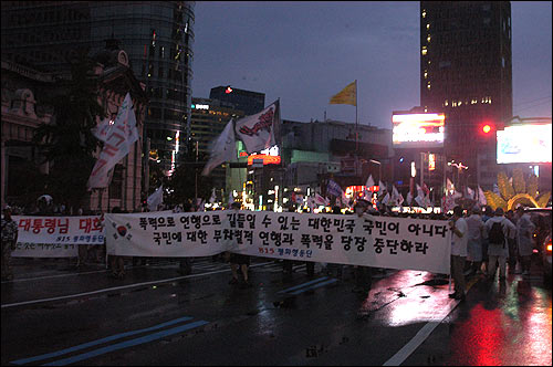 ¡â Çѱ¹ÀºÇà ¾Õ ±¤Àå¿¡ ¸ðÀÎ Ãкҵé. ¿¬ÇàÀ» °¢¿ÀÇÑ 815 ÆòÈÇൿ´ÜÀº "À̸í¹Ú ´ëÅë·É´Ô. ´ëÈ Á» ÇսôÙ", "Æø·Â°ú ¿¬ÇàÀ¸·Î ±æµéÀÏ ¼ö ÀÖ´Â ´ëÇѹα¹ ±¹¹ÎÀÌ ¾Æ´Ï´Ù!"¶ó´Â Çö¼ö¸·À» µé¾ú´Ù.