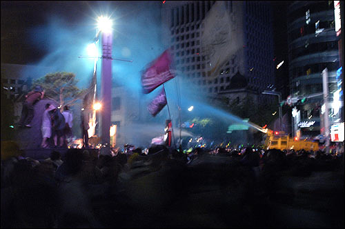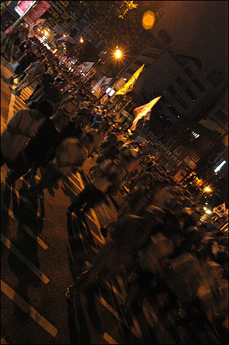 ¡â ´ë¿ÀÇ ¾Õ°ú µÚ¿¡¼ °æÂûµéÀÌ ¹°´ëÆ÷¸¦ ½î¸ç ¹Ð·Áµé°í, ½Ã¹ÎµéÀº ¸íµ¿¹æÇâÀ¸·Î Èð¾îÁ³´Ù.