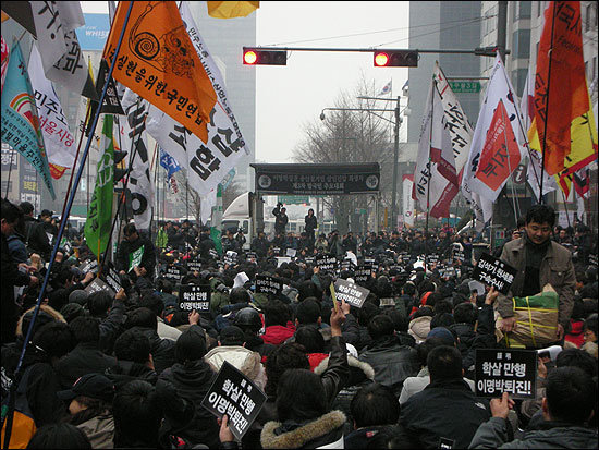 Ã߸ð´ëȸ¸¦ ¸¶Ä£ ½Ã¹ÎµéÀº ±¤È¹® ÂÊÀ¸·Î ÇàÁøÇÏ·Á ÇßÁö¸¸ °æÂûÀº ÀÌ¹Ì Á¾·Î, À»Áö·Î, ±¤È¹® µîÀ¸·Î ÅëÇÏ´Â ¸ðµç ±æÀ» ¹ö½º·Î ¸·¾Ò½À´Ï´Ù. À»Áö·Î ÂÊÀº ¾Æ¿¹ Â÷º®À» ¸¸µé¾î ½Ã¹ÎµéÀÌ µµ·Î·Î ³ª¿ÀÁö ¸øÇϵµ·Ï °·ÂÈ÷ Â÷´ÜÇß½À´Ï´Ù. ¶ÇÇÑ ÁöÇÏö Åë·Î¸¦ ÅëÇØ À̵¿ÇÒ °ÍÀ» ¿ì·ÁÇÑ °æÂûÀº û°è ±¤Àå ÂÊ¿¡ À§Ä¡ÇÑ ÁöÇÏö Ãⱸ¸¦ ¸·°í ½Ã¹ÎµéÀÇ À̵¿À» ÅëÁ¦Çß½À´Ï´Ù. ÀÌ·Î ÀÎÇØ Åä¿äÀÏ ±Ù¹«¸¦ ¸¶Ä¡°í Åð±ÙÇÏ·Á´ø ½Ã¹ÎµéÀº ¾Ö·Î¸¦ °Þ¾ú°í ¸¹Àº ½Ã¹ÎµéÀº °æÂû¿¡ °·ÂÈ÷ Ç×ÀÇÇÏ´Â ÀϱîÁö ºó¹øÇÏ°Ô ¹ß»ýÇÏ¿´½À´Ï´Ù.