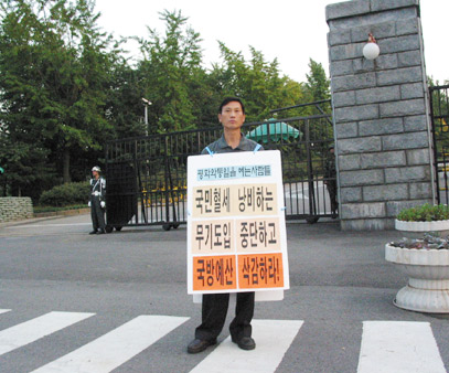 ¡ã À̳¯ ¾ÆÄ§¿¡´Â ÀÌÇü¼ö ÀÚÅëÇù ÅõÀïºÎÀåÀÌ, Á¡½É½Ã°£¿¡´Â ±è½Â±¹ ÆòÅë»ç Á¤Ã¥À§¿øÀåÀÌ, ±×¸®°í Àú³á Åð±Ù ½Ã°£¿¡´Â ½ÅÀçÈÆ ÆòÅë»ç ÆòȺÐȸ ȸ¿øÀÌ 1ÀÎ ½ÃÀ§¸¦ Àü°³Çß´Ù. »çÁøÀº ½ÅÀçÈÆ ȸ¿øÀÌ ±¹¹æºÎ ÈĹ® ¾Õ¿¡¼ 1ÀÎ ½ÃÀ§¸¦ ¹úÀÌ´Â ¸ð½À. [»çÁø - ÀÚÅëÇù È«º¸±¹]