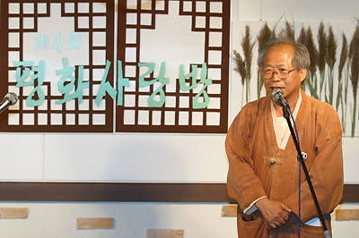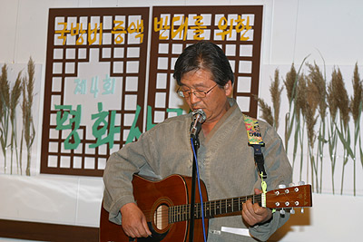 ÀÌ¾î¼ ¹®È«ÁÖ ¹®¿¹À§¿øÀå´ÔÀÌ ³ª¿Í¼ Á÷Á¢ ÀÛ»ç, ÀÛ°îÇß´ø °îÀ» °³»çÇÑ 'ÆòÈÀü ÅëÀÏÀü'À̶ó´Â ³ë·¡À» ÇÔ²² ºÎ¸£´Â ½Ã°£À» °¡Á³½À´Ï´Ù. ±×¸®°í ¸ðµç Âü¼®ÀÚµéÀÌ ÆòÈÀÇ ¸¶À½À» ´ã¾Æ '°¡¿À¸®¿¬'À» ¸¸µé¾ú½À´Ï´Ù. ÀÌ ½Ã°£¸¸ÅÀº Âü¼®ÀÚ ¸ðµÎ°¡ Á÷Á¢ Âü¿©ÇÒ ¼ö ÀÖ¾î ÇÑÁö¿¡ ±×¸²°ú ±ÛÀ» »õ°Ü ³ÖÀ¸¸ç ¸Å¿ì Áñ°Å¿öÇÏ¿´½À´Ï´Ù.
