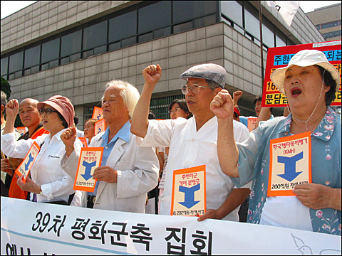 31ÀÏ(È) ³· 12½Ã, ±¹¹æºÎ ¹Î¿ø½Ç ¾Õ¿¡¼ 'ÆòÈ¿ÍÅëÀÏÀ»¿©´Â»ç¶÷µé'(ÀÌÇÏ ÆòÅë»ç)ÁÖÃÖ·Î '¹«±âµµÀÔ ¿¹»ê »è°¨ÇÏ¿©, ÆòȱºÃà ½ÇÇöÇ϶ó'´Â ÁÖÁ¦·Î Á¦39Â÷ ÆòȱºÃàÁýȸ°¡ ¿·È´Ù.