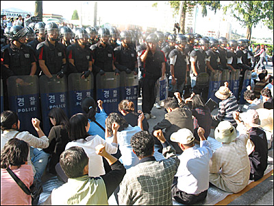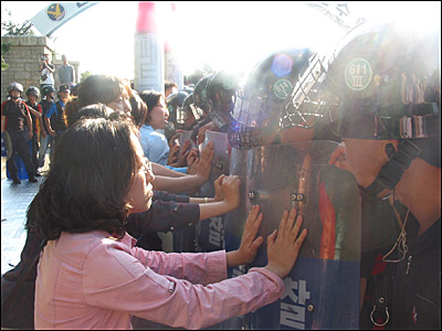 ¡â±¤ÁÖÀü³² °ø´ëÀ§ ȸ¿øµéÀº ºÎ´ë¾Õ¿¡ õ¸·À» Ä¡°í ³ó¼º¿¡ µé¾î°¬´Ù.
