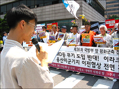25ÀÏ ³· ±¹¹æºÎ ¾Õ, À̶óÅ© ÆÄº´ öȸ, MDµî ¹«±âµµÀÔ ¹Ý´ë, ±¼¿åÀûÀÎ ¿ë»ê¹Ì±º±âÁö ÀÌÀüÇù»ó Àü¸é ÀçÇù»óÀ» Ã˱¸ÇÏ´Â Á¦36Â÷ ÆòȱºÃàÁýȸ°¡ ¾à30¿©¸íÀÇ Âü¼®ÀÚµéÀÇ ±¸È£·Î ÈûÂ÷°Ô ¿·È´Ù.
