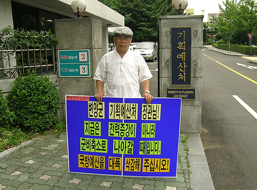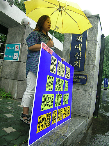 ¡â À̳¯ ±âȹ¿¹»êó ¾Õ¿¡¼­´Â Çѱ¹ÀÚȰÈİ߱â°ü ³ëµ¿ÀÚÇÕ¿¡¼­ '¿¹»ê»è°¨ ±Ôź, ºó°ïÁ¤Ã¥ Çö½ÇÈ­¸¦ À§ÇÑ ÀÚȰ³ëÁ¶ °áÀÇ´ëȸ'°¡ ¿­·È´Ù. °áÀÇ´ëȸ Âü°¡ÀÚµéÀº ÆòÅë»çÀÇ 1ÀνÃÀ§¿¡ ¿¬´ë°¨À» Ç¥Çϸç '±¹¹æ¿¹»ê »è°¨, º¹Áö¿¹»ê È®Ãæ'À» ÁÖÀåÇÏ¿´´Ù.