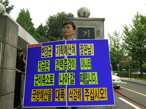 ÇöÀç ¡®±¹¹æ¿¹»ê¿ä±¸¾È¡¯ÀÌ ±âȹ¿¹»êó¿¡¼­ °ËÅäµÇ°í ÀÖ½À´Ï´Ù. ÀÌ¿¡ ÆòÅë»ç´Â Áö±ÝÀº Àü·ÂÁõ°­ÀÌ ¾Æ´Ï¶ó Çѹݵµ ÆòÈ­Á¤¼¼¸¦ ¹Ý¿µÇÏ¿© ±ººñÃà¼Ò·Î ³ª¾Æ°¡¾ß ÇÔÀ» ¹àÈ÷¸ç ±âȹ¿¹»êó ¾Õ¿¡¼­ ±¹¹æ¿¹»ê »è°¨À» Ã˱¸ÇÏ´Â 1ÀÎ ½ÃÀ§¸¦ ¹úÀ̰í ÀÖ½À´Ï´Ù.